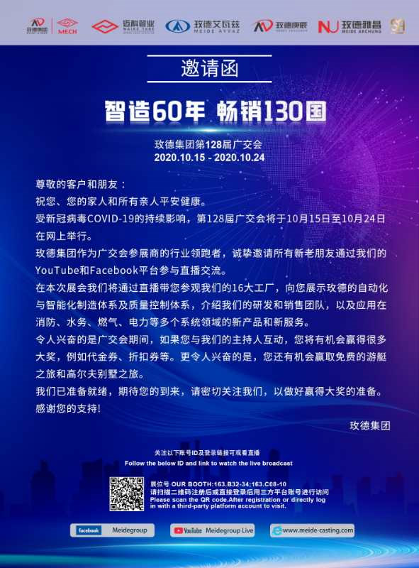欢迎各位新老客户参加并观看玫德集团第128届线上广交会直播
