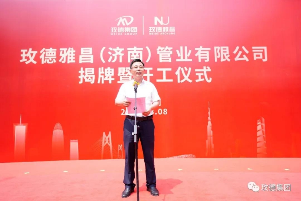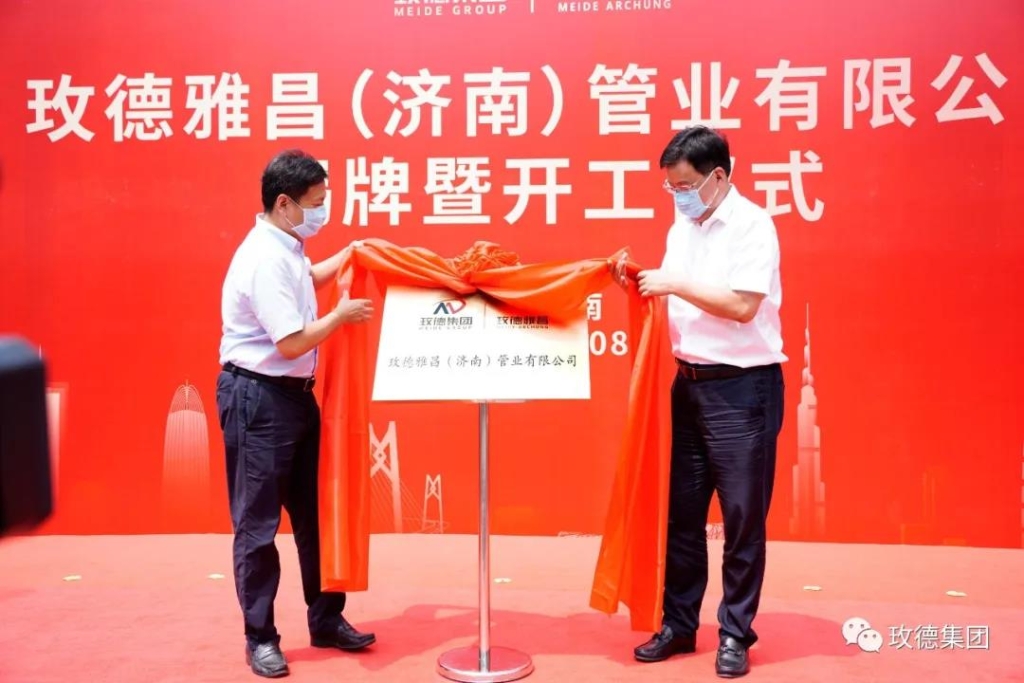 2021年8月8日,玫德雅昌(济南)管业有限公司揭牌暨开工仪式在济南平阴成功举行,平阴县委书记杨旭东,县长王秀成,县政协主席赵敬成,玫德集团董事局主席孔令磊,副主席刘勇、亓晓玉,玫德雅昌总经理薄祥军、玫德雅昌济南工厂厂长刘攀以及平阴县有关单位的主要负责人,玫德集团驻平阴各成员企业总经理参加了本次活动。