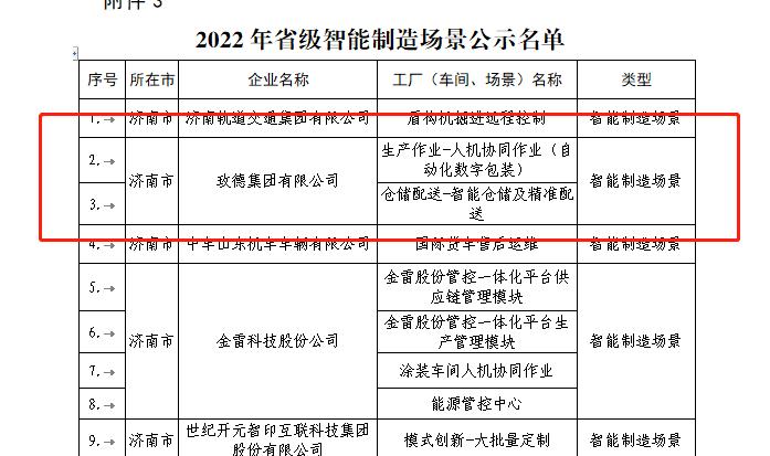 “自动化数字包装人机协同作业单元”和“智能仓储及精准配送制造”两场景入选2022年山东省级智能制造场景