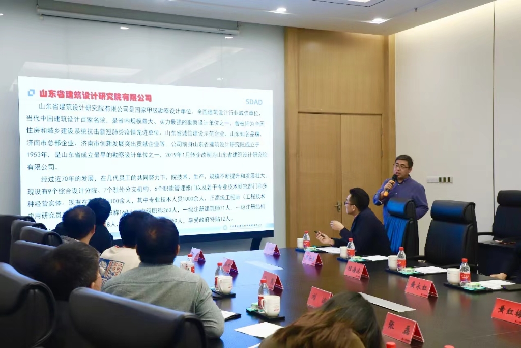山建六院团队首先参观了集团展厅及各生产厂区,之后双方领导进行了交流洽谈,迈克阀门、济南雅昌等成员企业先后介绍了各自的特色产品及技术优势,山建六院周建昌总工讲解设计院技术方案以及与玫德集团的合作愿景。