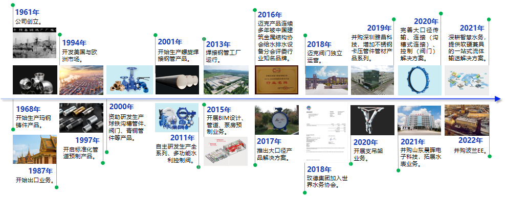 玫德集团水务领域产品涵盖管道、管卡、智能阀门、玛钢沟槽、不锈钢管材管件、碳钢卡压管件、物联网表、泵房预制BIM设计及智慧水务,全自主研发,软硬兼具的一站式解决方案。