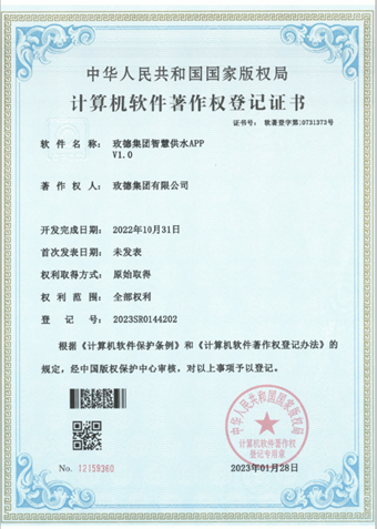 供水APP由玫德集团全自主研发,并已申请相关计算机软件著作权登记证书,可为用户提供定制化服务,做到人性化设计。
