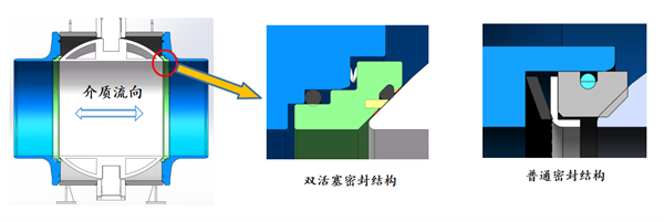 双活塞结构受压是阀座在活塞运动,阀座可以实现双向密封,密封可靠,启闭扭矩小。