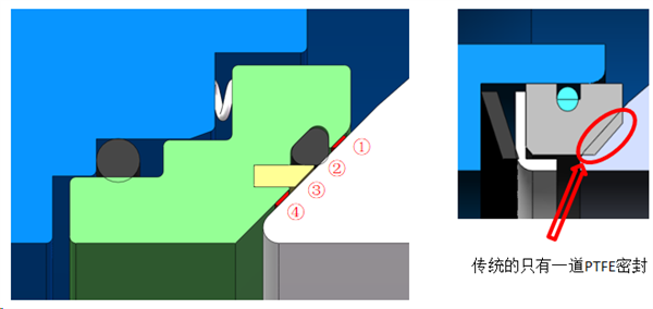 ③层采用RPTFE(强化聚四氟乙烯),耐磨耐高温。