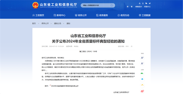 为贯彻落实《关于聚力推动工业经济高质量发展十大行动的意见》部署要求,加快提升工业品质量品牌,加强质量支撑,推动制造业高质量发展,山东省工业和信息化厅组织开展了2024年全省质量标杆典型经验遴选工作。