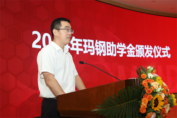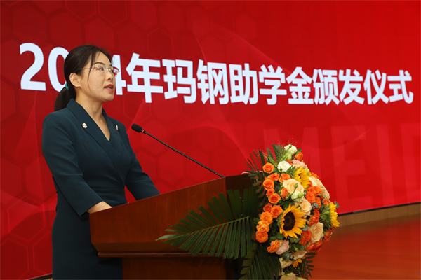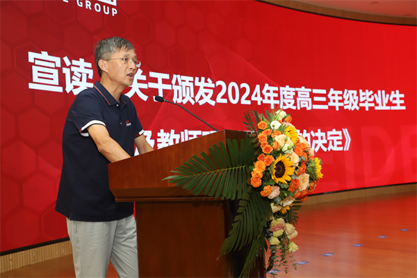 玛钢助学基金管理委员会会长、玫德集团董事局矩阵管理委员会副主席刘勇宣读《关于颁发2024年度高三年级毕业生及教师玛钢助学金的决定》。
