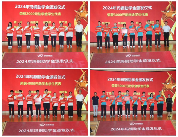 根据《玛钢助学基金管理章程》,183名毕业生荣获玛钢助学金,奖励金额74.6万;104名教师荣获玛钢助学金,奖励金额32.29万。玫德集团14名员工的子女获得特别助学金奖励,金额9.7万。