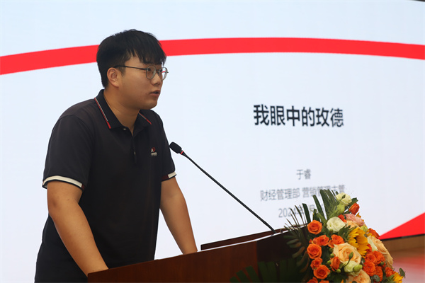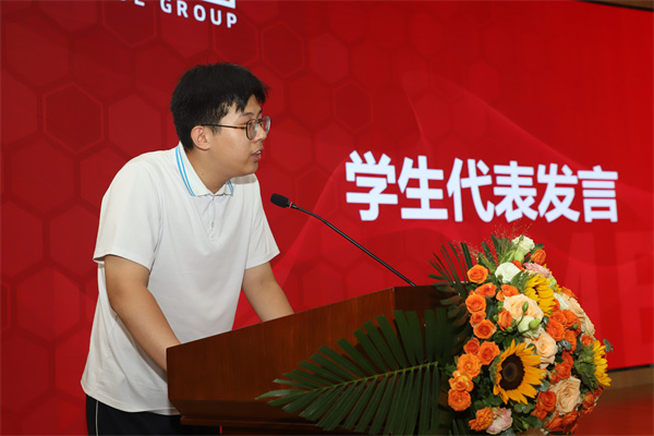 玛钢助学金获得者、目前就职于玫德集团的干部代表于睿,向与会学生分享了在玫德的成长心路与宝贵经验,就未来学业规划与职业发展提出建议,鼓励大家勇毅前行。