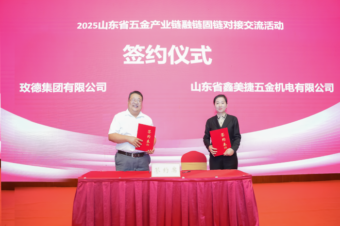 为了加强产业链各环节之间的联系与合作,实现资源共享、优势互补,共同应对产业发展中的困难和挑战,玫德集团分别与山东省鑫美捷五金机电有限公司、济南综保控股集团有限公司、济南大学机械学院在签约仪式上进行合作签约,实现了供需双方的精准匹配。