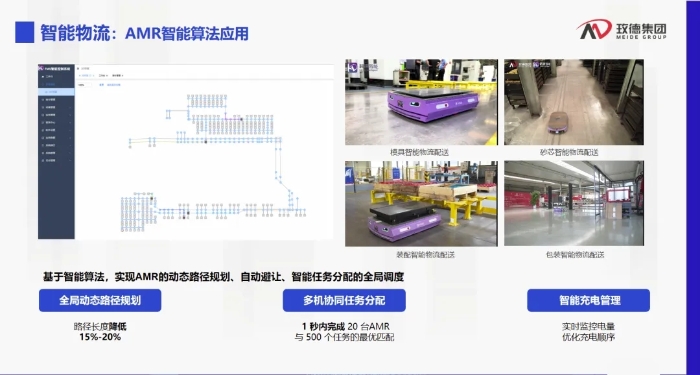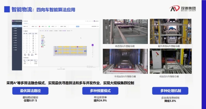 谈到玫德集团在智能领域的探索,孔主席着重展示了智能化、数字化在降本增效方面的巨大优势,从AI+铸造的创新及应用场景,到智能物流的四向车智能算法应用,再到智能物流AMR智能算法应用,孔主席向与会专家呈现出智能算法、大规模集群控制等技术为铸造企业带来的新可能、新提升。