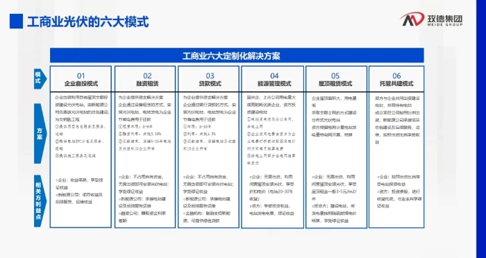 对于新能源的崛起,孔主席分享了玫德集团近些年光伏新能源的实践,并深入浅出的举例介绍了对铸造企业的实际经济价值,以及玫德新能源在工商业提供的六大定制化解决方案。